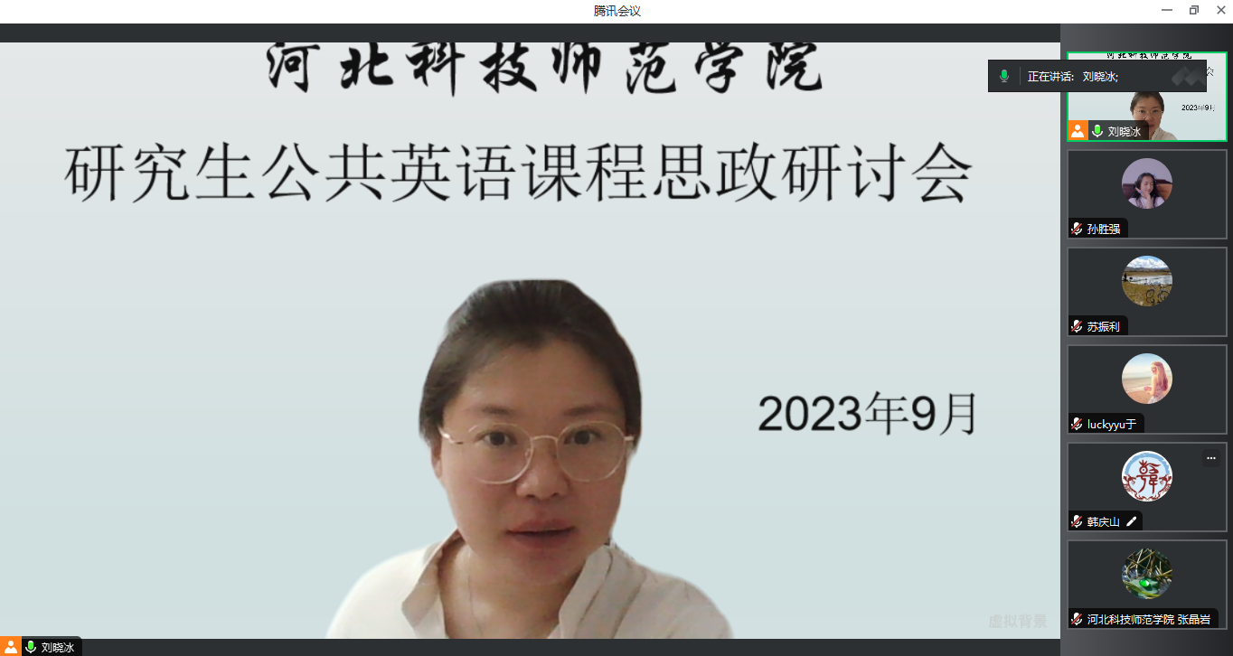 2023年9月8日304AM永利集团学科教学(英语)教学部组织硕士研究生公共英语(第一外国语)任课教师开展教学研讨活动,会议主题围绕研究生公共英语课程思政展开,研讨内容包括:针对教材的各个章节选出精讲主题和配套的练习,任课教师可以根据学生的具体专业情况灵活把握课程思政的切入点,可以利用超星学习通教学平台布置英语词汇、小组活动及主题作业等学习任务,并积极开展课程思政。