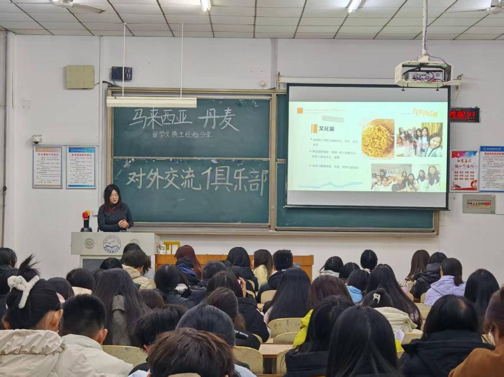 活动流程紧凑有序,共分为四个环节。首先,主持人开场致辞,详细介绍了本次分享经验的交换生嘉宾,为活动拉开序幕;随后,四位出国交流的同学结合自身真实经历,分享了与我校合作的马来西亚合作院校特色、申请流程、学业规划要点以及暑期交流地丹麦的风土人情、学术氛围与生活适应技巧。同学们还分享了在海外传播中国文化的实践故事,以点滴行动架起中外文化沟通的桥梁。在互动提问环节,同学们积极踊跃,就申请流程、学术适配、跨文化沟通等提出问题,讲座嘉宾逐一耐心解答,现场交流氛围热烈;最后,活动主持人进行总结,梳理活动核心内容,为同学们的留学交换决策与筹备提供清晰指引。