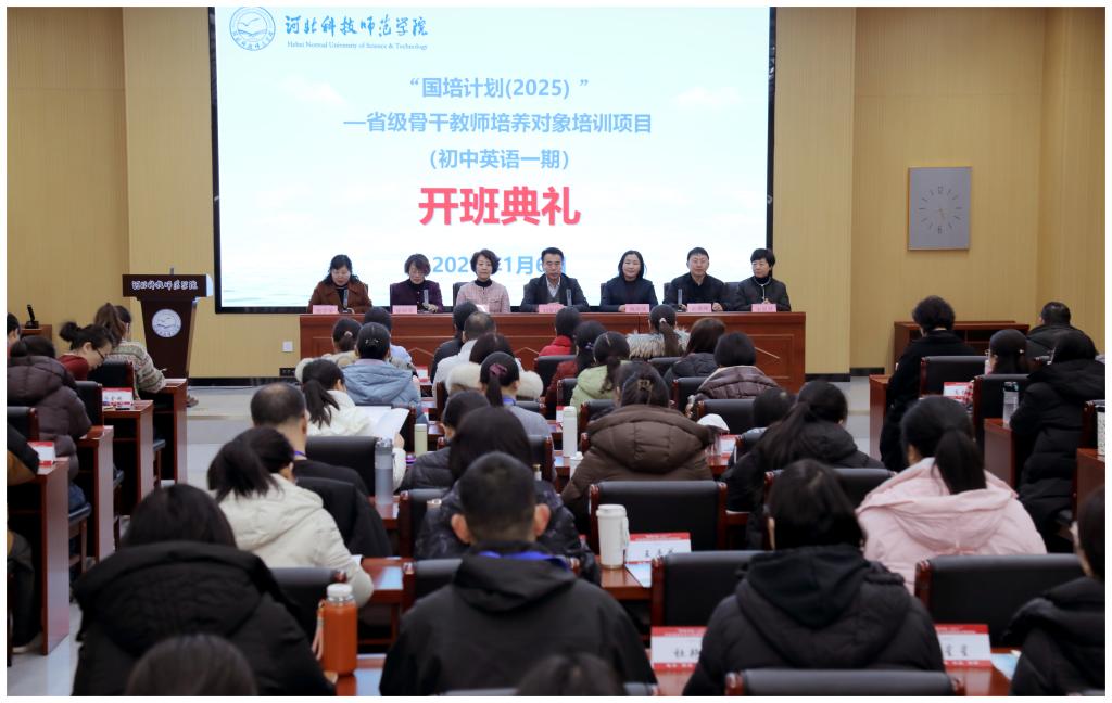 2025年1月6日,“国培计划(2025)”河北省初中英语骨干教师培训项目开班仪式在我校隆重举行。校党委常委、副校长刘荣昌,继续教育学院与304AM永利集团负责人、国培计划督导专家,以及全体参训教师和管理工作人员参加了开班典礼。